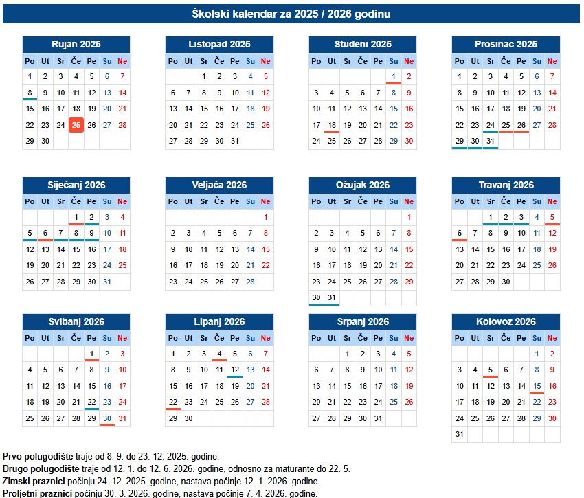 Odlukom Učiteljskog Vijeća nenastavni dan bit će petak, 24. 10. 2025.